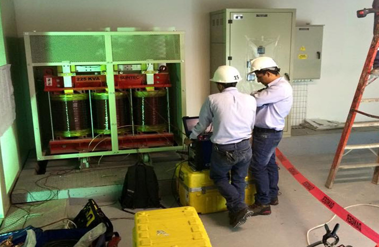 Las pruebas de la relación de espiras confirman la relación de transformación y polaridad de los transformadores nuevos y usados, esta permite identificar los problemas en uno o ambos bobinados o en el circuito magnético del núcleo. Esta prueba en transformadores de potencia se hace por inyección de baja tensión en transformadores des energizados y la medición de la tensión inducida en otro devanado